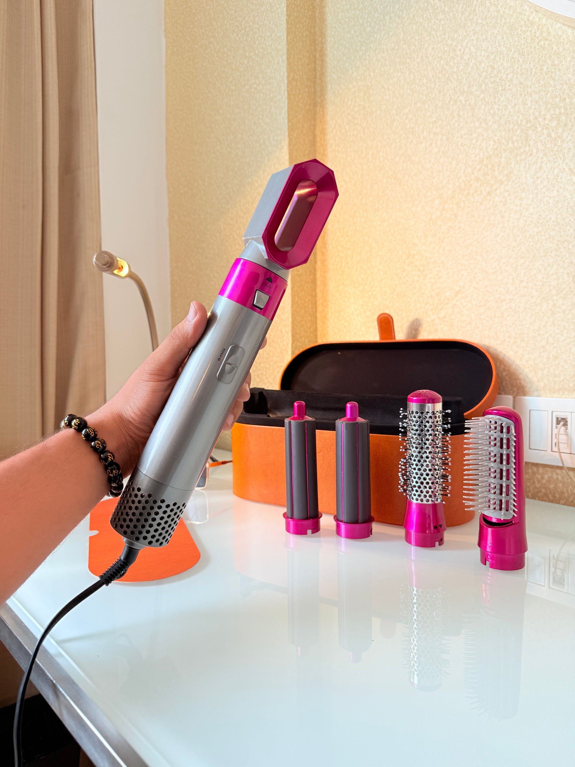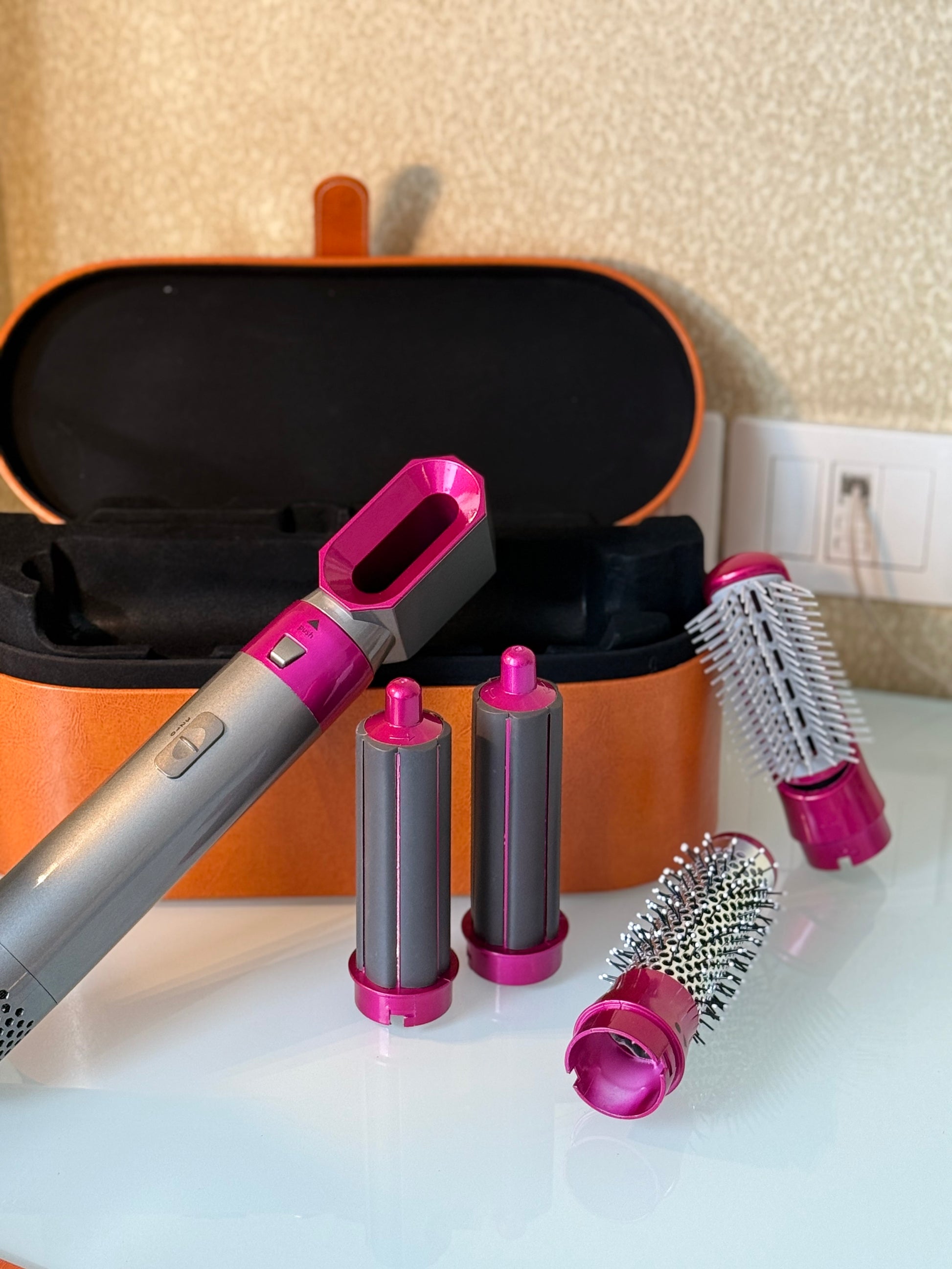 Experience salon-quality blowouts at home with the 5in1 Blow Dryer Brush👼. *DOESN’T SUPPORT AUTO CURLING* BUT CAN BE DONE MANUALLY This versatile brush combines the power of a dryer, straightener, and styler in one, giving you smooth and shiny hair in just one step. Save time and money while achieving beautiful hair with ease.
